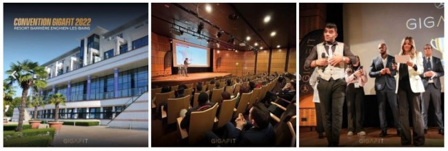 La convention annuelle Gigafit 2022 s’est déroulée au Resort Barrière d’Enghien-les-Bains et a été animée par la vedette de la télé Amélie Bitoun. Le Kick-boxeur Cyril Benzaquen, multiple champion du monde était également présent comme invité VIP.