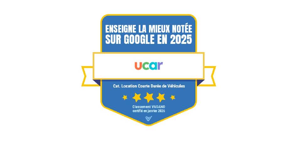 UCAR a été élue Enseigne de location de voiture la mieux notée sur Google en 2025, dans la catégorie Location de courte durée.