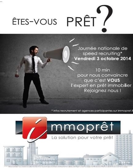 Spécialisé dans le courtage en prêt immobilier, le réseau Immoprêt organise un Speed Recruiting, le vendredi 3 octobre dans plusieurs de ses agences. L’objectif de ces rencontres express est de recruter de nouveaux collaborateurs souhaitant devenir expert en financement immobilier.