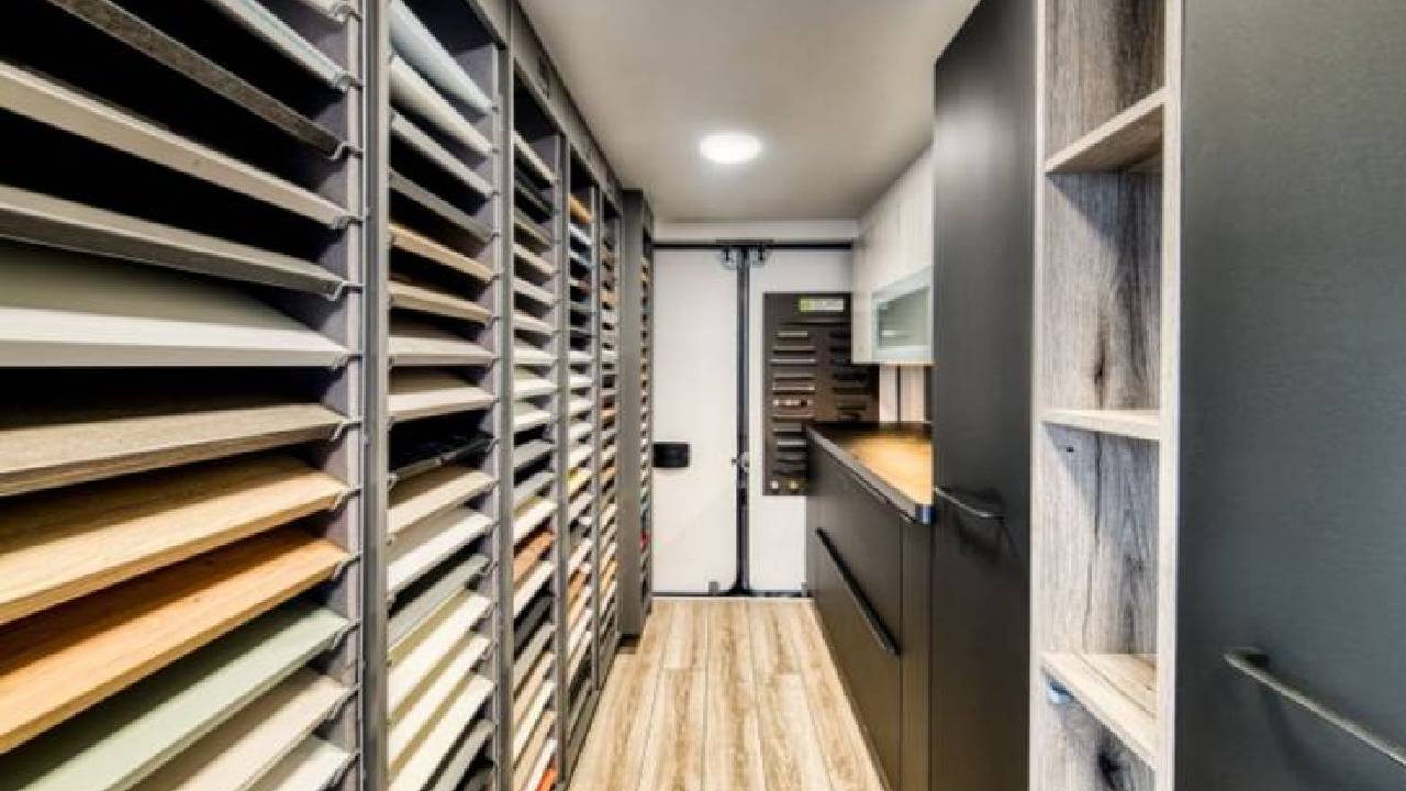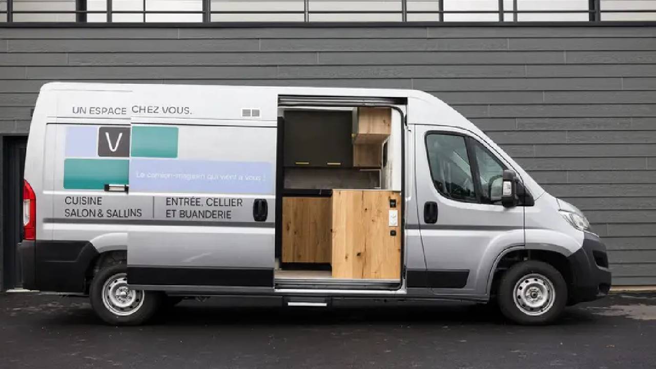 L’enseigne s’appuie sur un camion-magasin neuf, entièrement aménagé et floqué. À l’intérieur, tout est pensé pour recréer les conditions d’un showroom. Échantillons de matériaux, façades, plans de travail, poignées et accessoires permettent au client de se projeter concrètement.