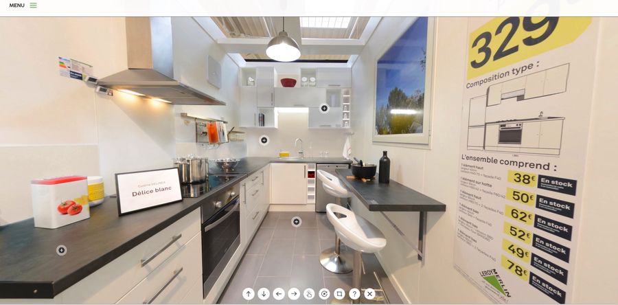 Cette réponse découle d’un développement constant permettant au Groupe VIP 360 de suivre les besoins du marché et d’y répondre. Un exemple parlant concerne l’une des visites virtuelles réalisées pour l’enseigne Leroy Merlin. En effet, le géant du bricolage français se heurtait à une difficulté de logistique en ayant une collection de cuisines équipées comportant 12 modèles exposés dans un seul et unique magasin. Par manque de place, l’ensemble des autres enseignes ne pouvaient en posséder autant. Leur souhait était d’être en capacité de montrer les 12 modèles dans l’ensemble de leurs enseignes grâce à la visite virtuelle. Le Groupe VIP 360 a répondu à cette demande en y ajoutant une nouvelle fonctionnalité développée spécialement pour l’occasion : une pièce entièrement customisable.