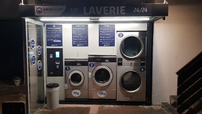 Le kiosque laverie nécessite un emplacement de quelques mètres carrés seulement. Il est économiquement intéressant et permet une bonne rentabilité dans des petites zones fréquentées par une clientèle locale ou de passage.